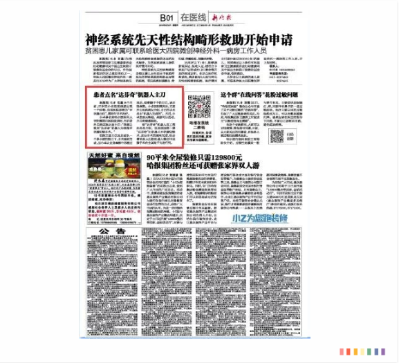據(jù)《新晚報(bào)》2019年8月8日第B01版報(bào)道,27歲的患者小卓(化名)發(fā)現(xiàn)頸部有腫物,當(dāng)?shù)蒯t(yī)院診斷為“甲狀腺占位”,需進(jìn)行手術(shù)治療。該患者來到哈爾濱醫(yī)科大學(xué)附屬第四醫(yī)院就診點(diǎn)名希望使用達(dá)芬奇機(jī)器人進(jìn)行甲狀腺切除手術(shù)。在主任陳之顯及其團(tuán)隊(duì)一個(gè)多小時(shí)的努力下,手術(shù)順利完成。這是我國(guó)首例“達(dá)芬奇”Xi機(jī)器人甲狀腺切除術(shù),這臺(tái)手術(shù)的順利完成,標(biāo)志著哈醫(yī)大四院機(jī)器人微創(chuàng)甲狀腺手術(shù)在全國(guó)處于先進(jìn)行列。