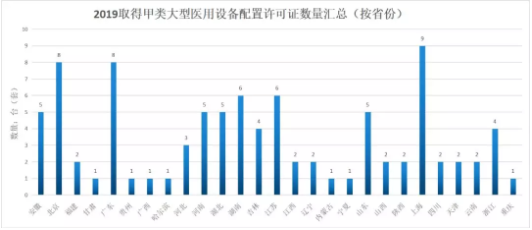 除海南、西藏、新疆外,全國(guó)27個(gè)省級(jí)行政區(qū)域都取得了1-8臺(tái)甲類大型醫(yī)用設(shè)備配置許可證。