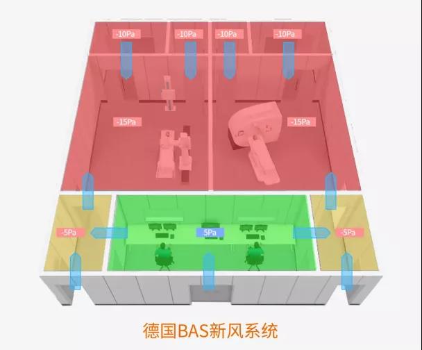 西門(mén)子醫(yī)療德國(guó)抗疫BAS新風(fēng)方案,使操作室從原來(lái)的“黃區(qū)”半污染區(qū)變?yōu)榘踩摹熬G區(qū)”清潔區(qū)