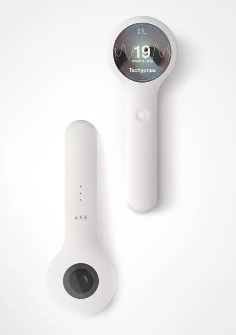 Dr. Loupe 的功能設(shè)計(jì)頗為下工夫,其下部有呼吸速率傳感器,裝置的上部有一個(gè)顯示監(jiān)視器,此外改設(shè)備還包括照相機(jī),LED燈,虹膜識(shí)別紅外線傳感器和充電端口。充電座還可以投射一個(gè)屏幕,對(duì)患者的病史和當(dāng)前診斷數(shù)據(jù)進(jìn)行光束投射。