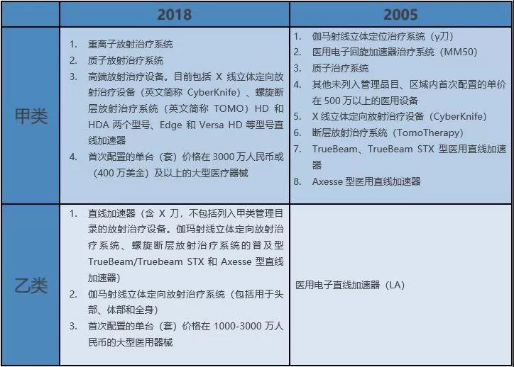 附:放射治療設(shè)備2018版目錄與2005版目錄對(duì)比