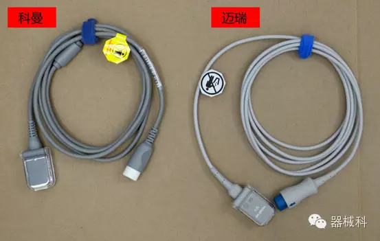 兩家使用的血氧探頭有明顯的區(qū)別??坡目瓷先ジ~瑞的設計看起來新超大氣,顏色更白。不知道用久了,會不會發(fā)黃變色。看了一下探頭的發(fā)光管和接收管,居然是一樣的,從發(fā)光管和接收管的外形上看用的都是OSI的,看來在這一點上大家都比較認可這家頂級老牌生產的管子。用手指感受了一下兩家的探頭,邁瑞的選用的材料比較柔軟,在感受上比較舒適,科曼的探頭襯墊手感上要硬朗一些,不過也不會有任何的不適。