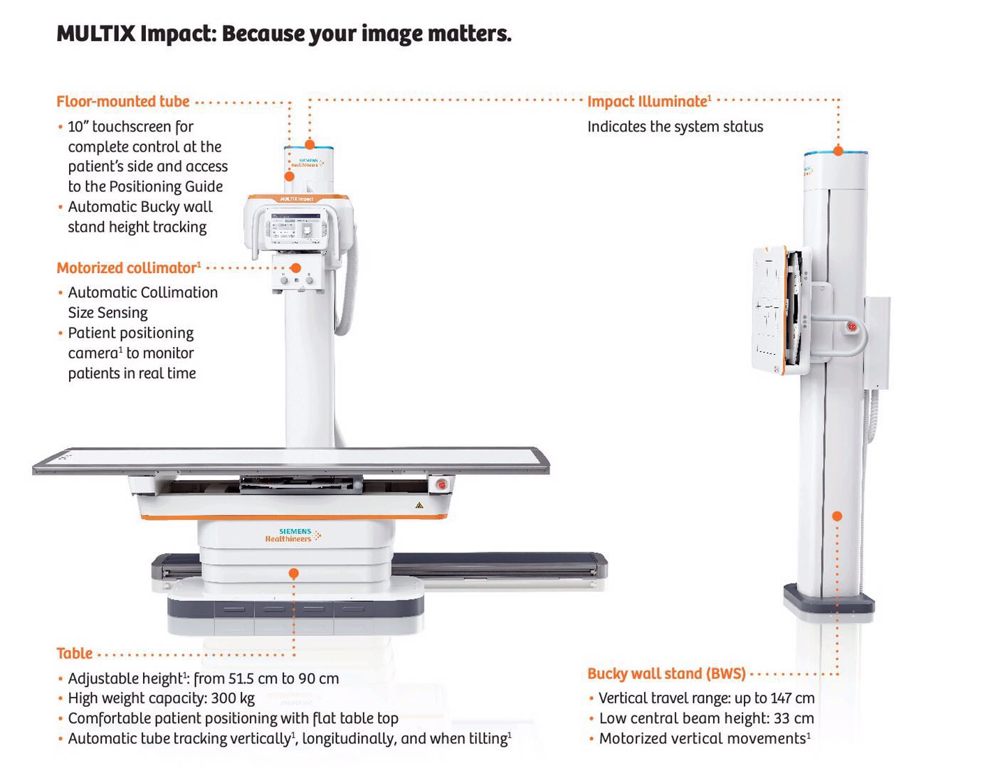 2019年1月21日,美國(guó)食品和藥物管理局(FDA)批準(zhǔn)了西門(mén)子醫(yī)療保健公司的Multix Impact,這是一種價(jià)格合理的地板安裝式數(shù)字放射成像(DR)系統(tǒng),可擴(kuò)展高質(zhì)量成像的使用范圍并增強(qiáng)患者體驗(yàn)。