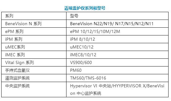 邁瑞的監(jiān)護儀系列比較多,包括BeneVision N系列、ePM系列、iPM系列、uMEC系列、iMEC系列、Vital Sign系列、遙測系列以及中央監(jiān)護站和手持式血氧儀。