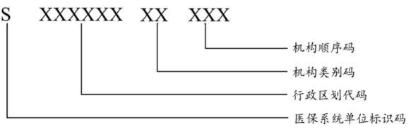 第1部分:醫(yī)保系統(tǒng)單位標(biāo)識(shí)碼,用1位大寫(xiě)英文字母“S”表示。