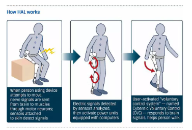 在這部科幻小說的啟發(fā)下,美國和日本在1960年后分別開啟了機械外骨骼的研究。美國由軍方主導(dǎo)研發(fā),日本則直接從外骨骼的商業(yè)用途入手,關(guān)注幫助殘疾人和老年人進(jìn)行日常生活和生活(散步、爬樓梯、負(fù)載等)。
