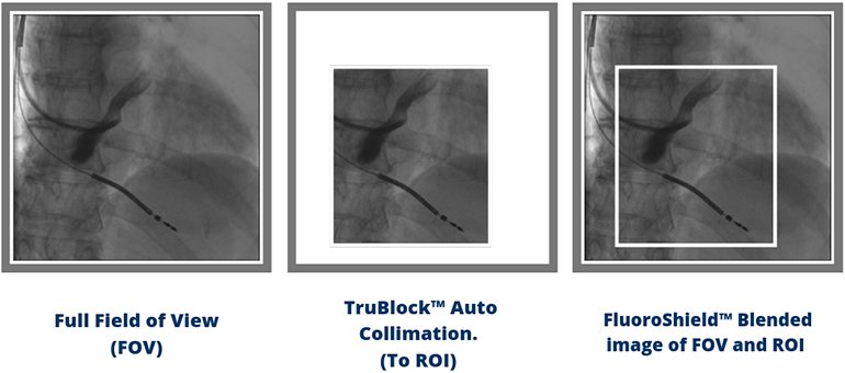 在進(jìn)行介入程序期間,F(xiàn)luoroShield會利用熒光或電影(跳動的心臟的X射線短片)成像自動將輻射束對準(zhǔn)目標(biāo)區(qū)域。這要?dú)w功于歐米茄的TruBlock自動準(zhǔn)直技術(shù)。