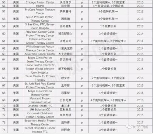 附:全球已運(yùn)營(yíng)質(zhì)子重離子治療中心匯總表(截至2018年7月)