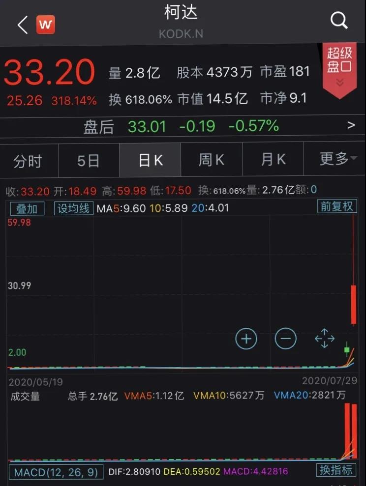 此消息一經(jīng)傳出,柯達公司的股票大幅飆升了三倍,直接點燃了柯達的股價。
