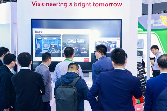 在現場展示的巴可(Barco)一體化閱片中心,98英寸大尺寸醫(yī)療一體化會診大屏、高清醫(yī)用顯示器、QAWeb Enterprise軟件系統、可立享無線視頻會議一體機的配合,不僅為放射科的智能化建設提供了新思路,也為患者提供了更加精準、高效、高質量的醫(yī)療服務。