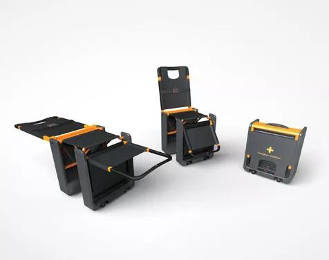 EMERGENCY WHEELCHAIR是一種用于緊急狀態(tài)下的輪椅,可用于運(yùn)送生病或受傷的火車乘客。使用時(shí),僅需要按下按鈕,便可抬起一個(gè)手柄成為輪椅的后部,然后伸展設(shè)備的主體以形成座椅結(jié)構(gòu),輪椅的結(jié)構(gòu)形成,鎖定點(diǎn)以保護(hù)整個(gè)結(jié)構(gòu)。當(dāng)存放輪椅時(shí),可以將椅子的主體和椅背折疊成緊湊的盒子。