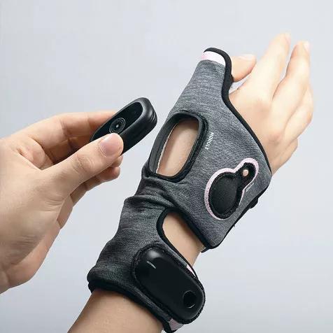 這是一款創(chuàng)新的手部保護(hù)裝置,專為慢性手部受傷及病癥設(shè)計(jì)。因受傷或者是長時(shí)間保持不良姿勢(shì)工作,導(dǎo)致手部出現(xiàn)持續(xù)性疼痛,已經(jīng)成為現(xiàn)代生活中常見的病癥,HANDICARE 是一套針對(duì)觸發(fā)手指綜合癥的智能手部康復(fù)設(shè)備,它通過使用APP來檢測手部肌肉施加的力,進(jìn)而激活可更換的電療(振動(dòng))模塊以緩解疼痛點(diǎn)。
