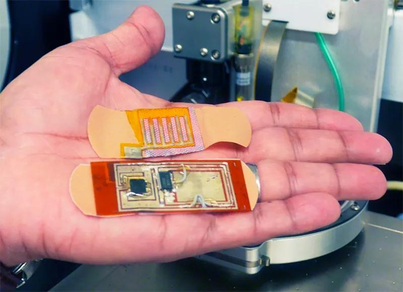 這種類型也是智能繃帶,它能通過(guò)電子元件記錄潰瘍形成、感染、氧氣、壓力、溫度、濕度、血糖水平來(lái)評(píng)估傷口的愈合進(jìn)度,幫助醫(yī)生及時(shí)做出決定。
