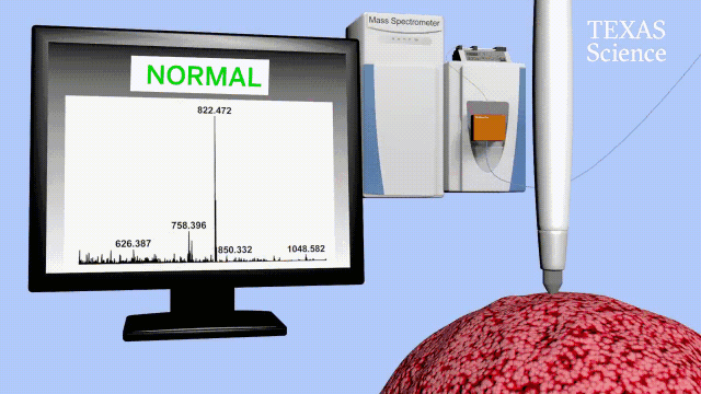 是利用了癌細胞的獨特代謝分子。就像每個人的指紋都不相同,每種癌細胞生命活動產(chǎn)生的代謝分子也是獨一無二的。因此,通過分析代謝分子就能分辨該組織是好是壞。