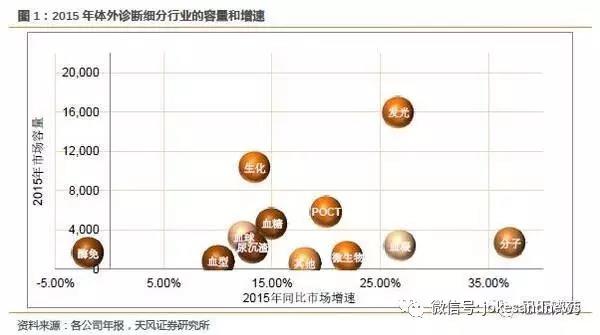 由上圖看出,從市場容量和行業(yè)增速兩個維度來看,化學(xué)發(fā)光細(xì)分具有良好的投資價值潛質(zhì)。2015年化學(xué)發(fā)光市場容量160億,占整個體外診斷行業(yè)30%以上,2015年行業(yè)增速27%,未來3-5年仍具備較高的行業(yè)景氣度。