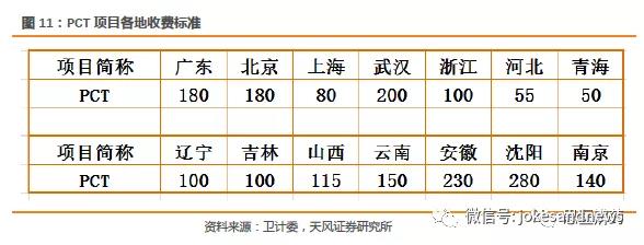 按照購買力平價,PCT項目在中國收費為50比較合理。最早進(jìn)口品牌進(jìn)入中國,一般先進(jìn)入經(jīng)濟(jì)相對發(fā)達(dá),人口密集的大省,因此最早的價格多在150-200之間。2014年上海的PCT價格為100,今年已經(jīng)降為80,未來依然存在降價的趨勢,并且會各個城市都會持續(xù)下調(diào)收費。