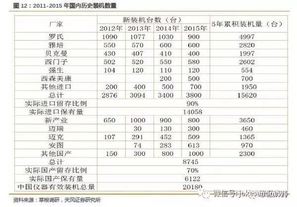 根據(jù)以上邏輯,我們大致可以測算目前的存量市場,發(fā)光還未完全滿足終端需求,2015年儀器保有量來看,只滿足了60%的需求。而未來需求端的增長依然保持極高的增速,除了進(jìn)口企業(yè),少量國產(chǎn)優(yōu)秀品牌可以分享藍(lán)海市場,儀器裝機依然有很大的空間待開發(fā)。