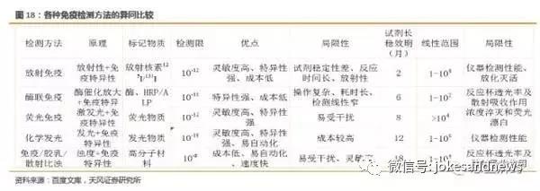 化學(xué)發(fā)光大部分項目為三類注冊,由儀器試劑組成封閉系統(tǒng),無開放系統(tǒng),技術(shù)門檻高,準(zhǔn)入難,具有先天護(hù)城河優(yōu)勢?;瘜W(xué)發(fā)光屬于體外診斷子行業(yè)中的免疫分支,臨床免疫廣義包括以抗原抗體結(jié)合為原理的所有產(chǎn)品,包括化學(xué)發(fā)光、酶聯(lián)免疫、膠體金、放免、生化中的免疫比濁和膠乳項目、特種蛋白儀等。狹義的臨床免疫通常指化學(xué)發(fā)光,該名稱取決于其方法學(xué)信號檢測的特點。不同的免疫學(xué)方法有不同的應(yīng)用場景和優(yōu)劣勢,具體如下表所示: