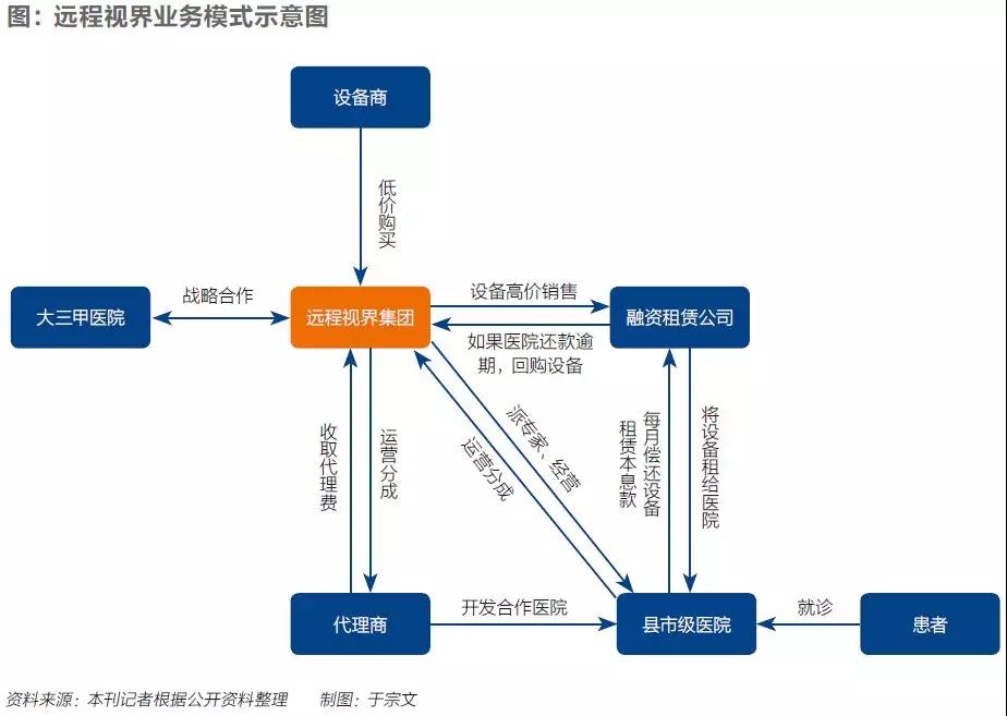 在遠程視界官網(wǎng)上,其自我定位為“??七h程醫(yī)療聯(lián)合體O2O平臺”。但一位前員工解釋說,其主要盈利模式就是做融資租賃。