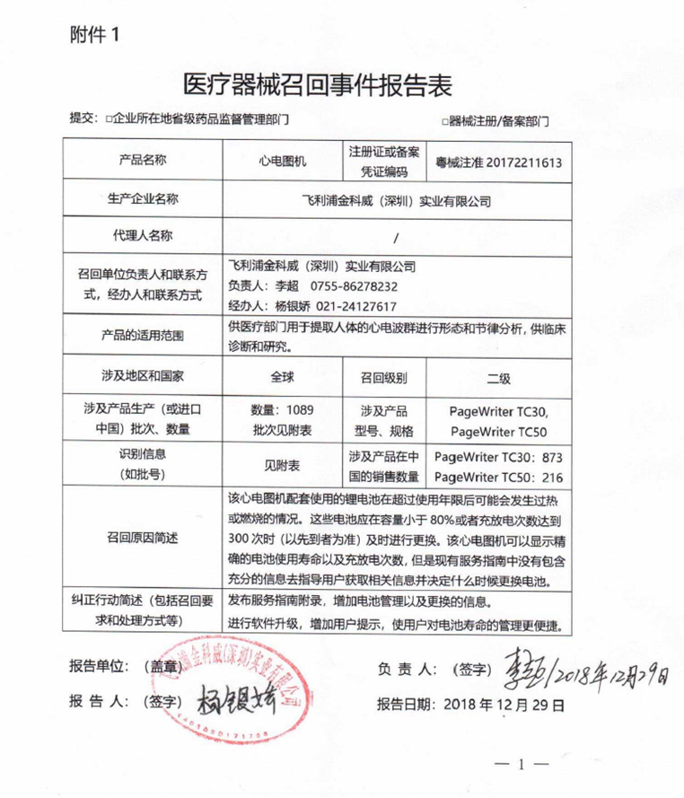新年伊始,國家藥品監(jiān)督管理局官網(wǎng)又見飛利浦兩則醫(yī)療器械主動(dòng)召回報(bào)告,召回產(chǎn)品包括33982臺(tái)病人監(jiān)護(hù)儀和2650臺(tái)心電圖機(jī),召回級(jí)別均為二級(jí)。