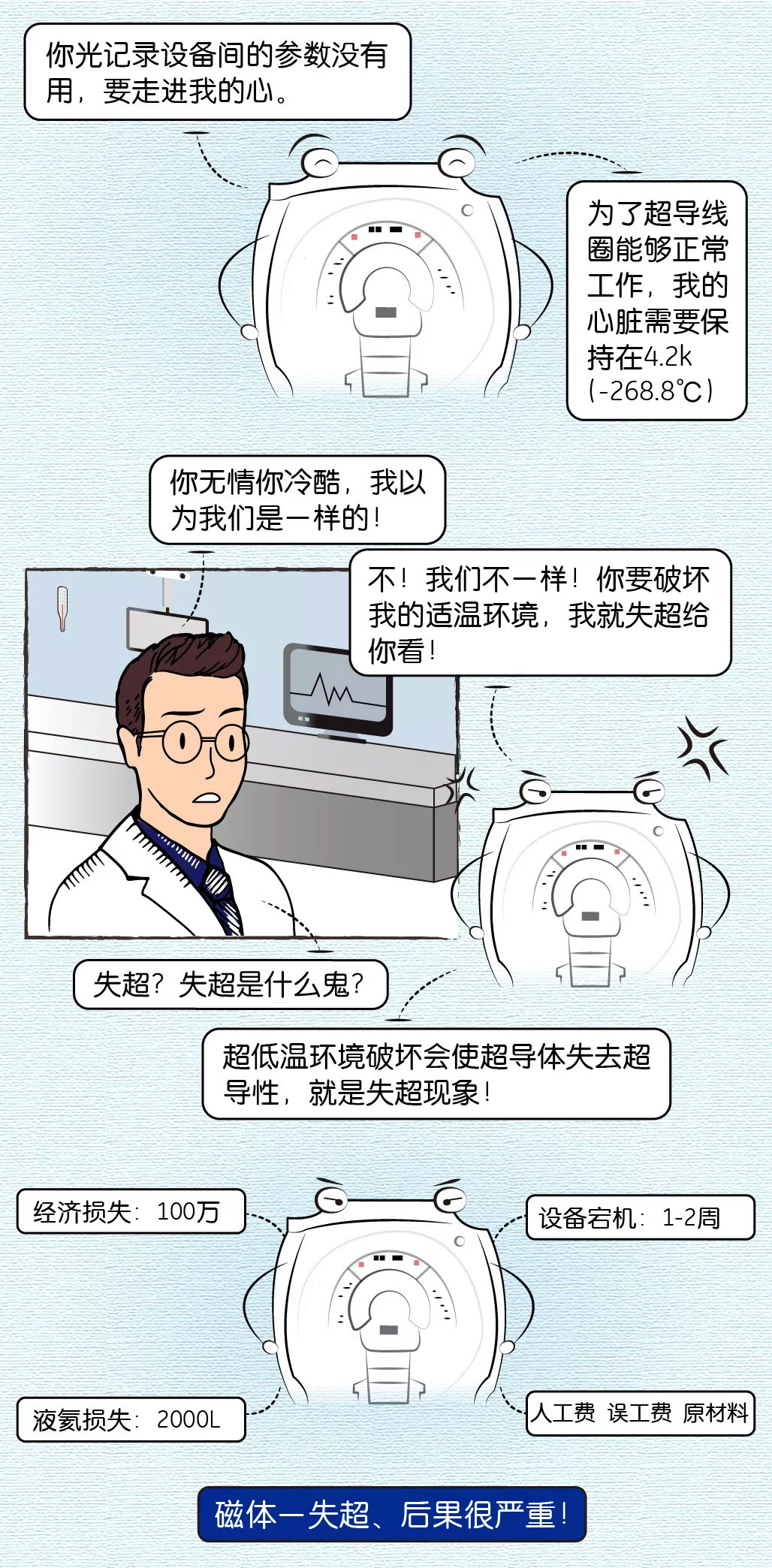 失超對(duì)于設(shè)備的運(yùn)營方而言是近乎毀滅性的災(zāi)難,它意味著:直接經(jīng)濟(jì)損失100萬、設(shè)備宕機(jī)1-2周、液氦損失2000L,外加上人工費(fèi)、誤工費(fèi)和材料費(fèi)等等。一句話,為免MRI發(fā)生失超,設(shè)備管理員須時(shí)刻提防、小心呵護(hù)。