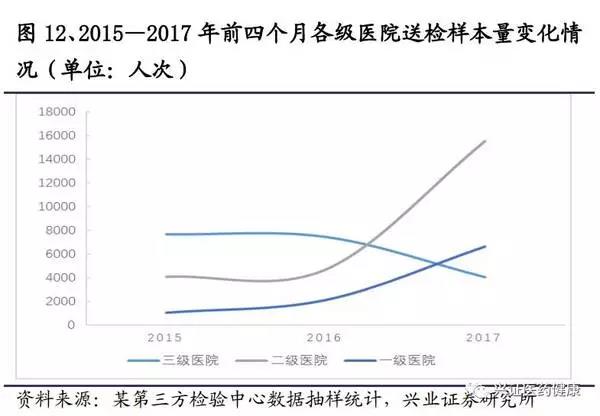 分級(jí)診療是近些年國(guó)內(nèi)醫(yī)療界的重要課題,2015年國(guó)務(wù)院發(fā)表指導(dǎo)意見,以提高基層醫(yī)療服務(wù)能力為重點(diǎn),以常見病、多發(fā)病、慢性病分級(jí)診療為突破口,完善分級(jí)診療制度。在2017年兩會(huì)再次重申,在2017年底前要完成85%的覆蓋率。將來,明確診斷將作為基層醫(yī)院承擔(dān)的重要任務(wù),而今基層醫(yī)院缺乏專業(yè)檢驗(yàn)人員和檢驗(yàn)設(shè)備的現(xiàn)狀,將使得近幾年基層檢驗(yàn)需求呈井噴式爆發(fā)。