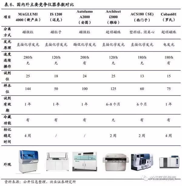 從以上進(jìn)程可看出,技術(shù)到位、價(jià)格優(yōu)勢(shì)以及找準(zhǔn)市場(chǎng)切入口是其完成進(jìn)口替代的關(guān)鍵。發(fā)光行業(yè)與生化行業(yè)有其區(qū)別,發(fā)光本質(zhì)為免疫反應(yīng),各廠家的技術(shù)平臺(tái)完全不同,為保證結(jié)果的準(zhǔn)確性和穩(wěn)定性,將迫使檢驗(yàn)人員使用同一廠家提供的試劑和分析儀。在各大醫(yī)院對(duì)于各個(gè)項(xiàng)目的檢查都基本專機(jī)專用,未來也很難將其開放化。所以,在發(fā)光的進(jìn)口替代進(jìn)程中,試劑和儀器的一體化研發(fā)是必須的。國(guó)內(nèi)化學(xué)發(fā)光龍頭企業(yè),例如,新產(chǎn)業(yè)、安圖生物、邁克生物等都具備試劑和儀器的一體化研發(fā)能力。參考生化的替代道路,5年內(nèi)將爆發(fā)大規(guī)模進(jìn)口替代。