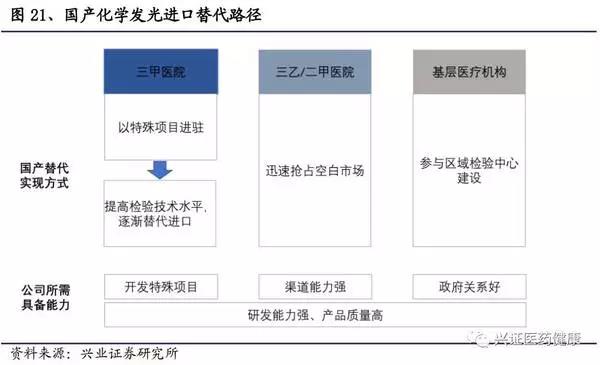 綜上可見,分級(jí)診療的效果將逐步顯現(xiàn),基層醫(yī)院將現(xiàn)大規(guī)模發(fā)光診斷需求,企業(yè)抓住基層需求和區(qū)域檢驗(yàn)中心的機(jī)會(huì),將獲得相當(dāng)?shù)氖找?/strong>。