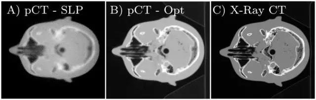 科研人員將質(zhì)子CT圖像與傳統(tǒng)X線(xiàn)CT圖像進(jìn)行了比較。盡管質(zhì)子CT圖像比X線(xiàn)CT圖像模糊,但能夠清晰顯示質(zhì)子與組織之間的相互作用。當(dāng)前質(zhì)子治療過(guò)程中,質(zhì)子照射范圍和準(zhǔn)確性都存在不確定性。如果使用X線(xiàn)CT圖像進(jìn)行治療計(jì)劃制定,那么束流實(shí)際到達(dá)和釋放能量的位置會(huì)與計(jì)劃有3-5%的差異,從而損傷正常細(xì)胞;而使用質(zhì)子CT,上述誤差可以降低到1%。