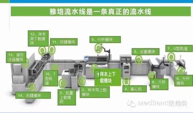 縱觀IVD國際品牌的發(fā)展歷程,都是從低速生化朝高速生化發(fā)展,由單機(jī)朝向集成化、自動化、流水線的方向發(fā)展。由于中國病人的過度集中于大型三級醫(yī)院,年收入超過10億的醫(yī)院每天樣本量超過1000個(gè),高速儀器是高端醫(yī)院的剛需,因此研發(fā)高速儀器的能力也是未來進(jìn)入大型公立醫(yī)院的前提要求,流水線、生化免疫聯(lián)機(jī)是大勢所趨。